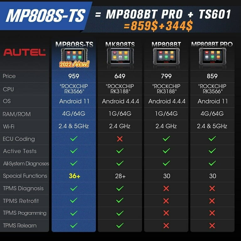 Autel Maxipro Mp808s Ts Car Diagnostic Scanner Professional Tpms Services Ecu Coding Full System Diagnostic 31 Services Same As Ms906ts Ms906 Pro Ts Walmart Com